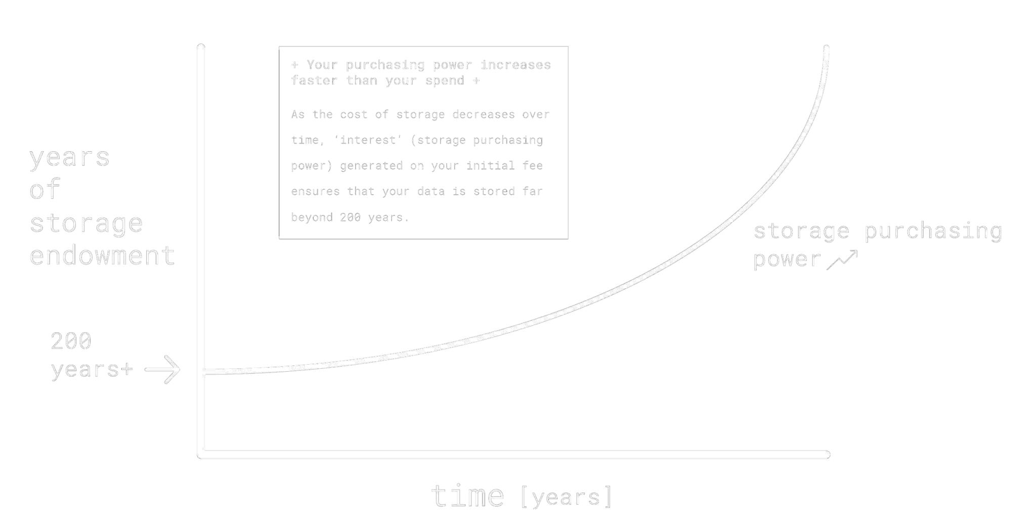 The result is extremely cheap data storage costs over time. At current rates, the first 200 years of storage on Arweave are only $.007 per MB.