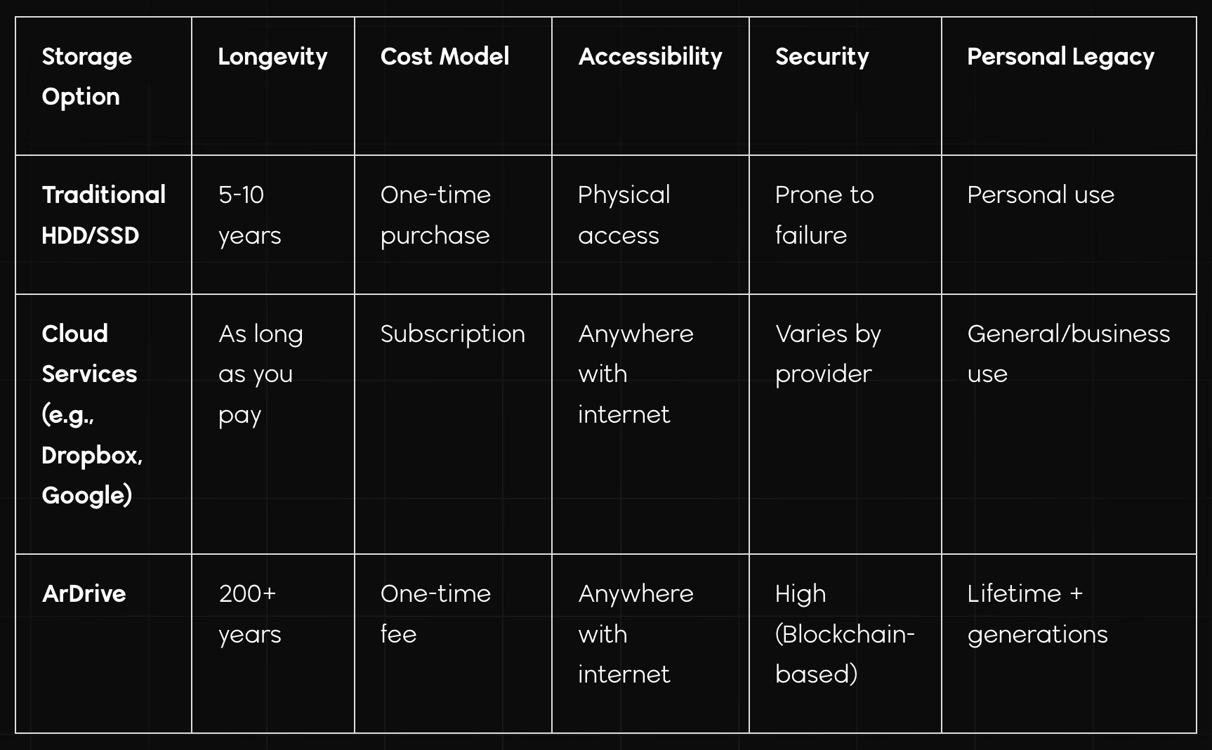 The digital revolution has made data the new gold, and the question “Can you buy permanent storage?” is more relevant than ever. It echoes the sentiments of anyone who’s ever lost valuable memories to a hard drive failure or a discontinued cloud service.Traditional data storage methods like hard drives, CDs, and cloud services may promise permanent storage but often fall short, succumbing to physical degradation or the whims of service providers. So the quest to permanently safeguard our digital footprints remains. Is there a way to save your most important documents and cherished family photos for a lifetime and beyond? ArDrive has stepped forward to answer this question. Yes, you can buy permanent data! With ArDrive you can easily have – pay once, store forever – permanent data storage. This will be a game changer for anyone who is serious about their content and files. Let’s take a closer look at how we got here, and then the way forward.