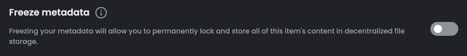 When you upload an NFT on OpenSea, the last option you are given is to Freeze Metadata.This Freezing option uses IPFS for data storage instead of Arweave and therefore will not permanently store your metadata.There’s no harm in freezing your metadata if you wish, but this will not needed if you have already added your art file to the permaweb.
